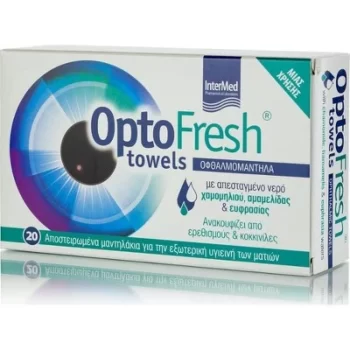 Το OptoFresh EYELID CLEANSER, χάρη στα υδατικά αποστάγματα χαμομηλιού και ευφρασίας που περιέχει, είναι ο ιδανικός αφρός καθαρισμού και περιποίησης των ερεθισμένων βλεφάρων. Τα βλέφαρα, λόγω της πολύ λεπτής επιδερμίδας τους, είναι ευάλωτα σε πολλούς ερεθιστικούς παράγοντες, με αποτέλεσμα την εμφάνιση ξηρότητας και ερεθισμών. Τόσο οι εκκρίσεις των οφθαλμών –είτε φυσιολογικές, είτε παθολογικής αιτιολογίας – όσο και η έκθεση των βλεφάρων στην πληθώρα των εξωγενών, ερεθιστικών παραγόντων (σκόνη, καπνός, καυσαέρια, ξηρός αέρας, μακιγιάζ) ερεθίζουν τα βλέφαρα και τα καθιστούν επιρρεπή στην εμφάνιση βλεφαρίτιδας και άλλων δερματικών παθήσεων.