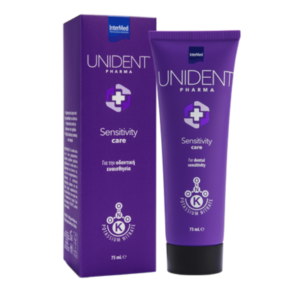 Η Unident Pharma sensitivity Care είναι μια φθοριούχος οδοντόπαστα καθημερινής χρήσης με τριπλό σύστημα απευαισθητοποίησης των δοντιών και οργανικές ενώσεις φθορίου για την καταπολέμηση της οδοντικής ευαισθησίας.